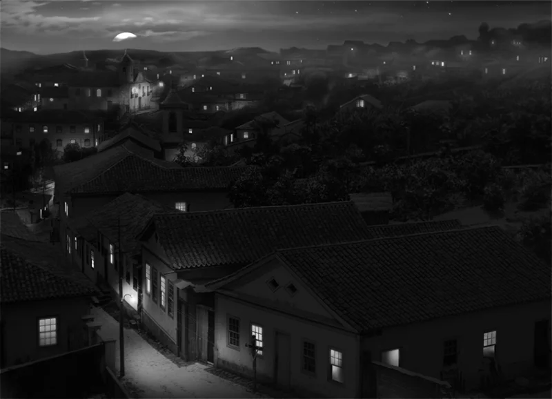 Fotos antigas de Minas Gerais foram restauradas e manipuladas digitalmente para simular imagens noturnas. Eram então usadas como transições entre cenas dos capítulos da minissérie.