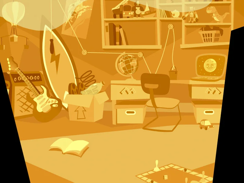 Criação de elementos de cenários para o desenho animado Quarto do Jobi exibido pela TV Cultura.
